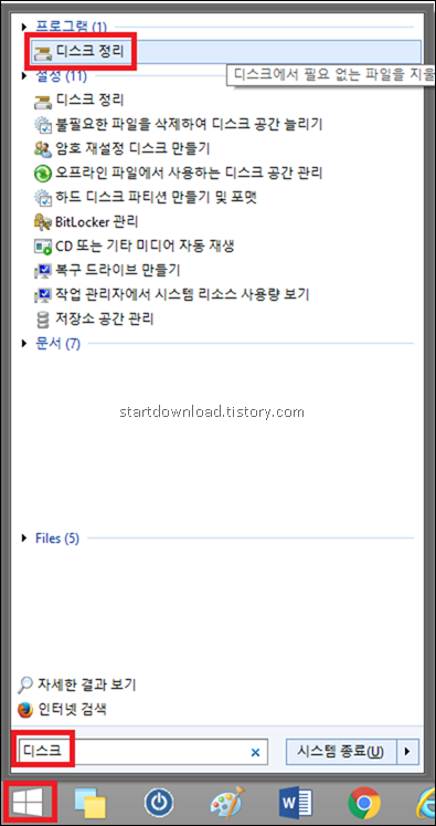 윈도우 버튼 클릭 –> 저기 디스크 입력 –> 젤위에 나옴